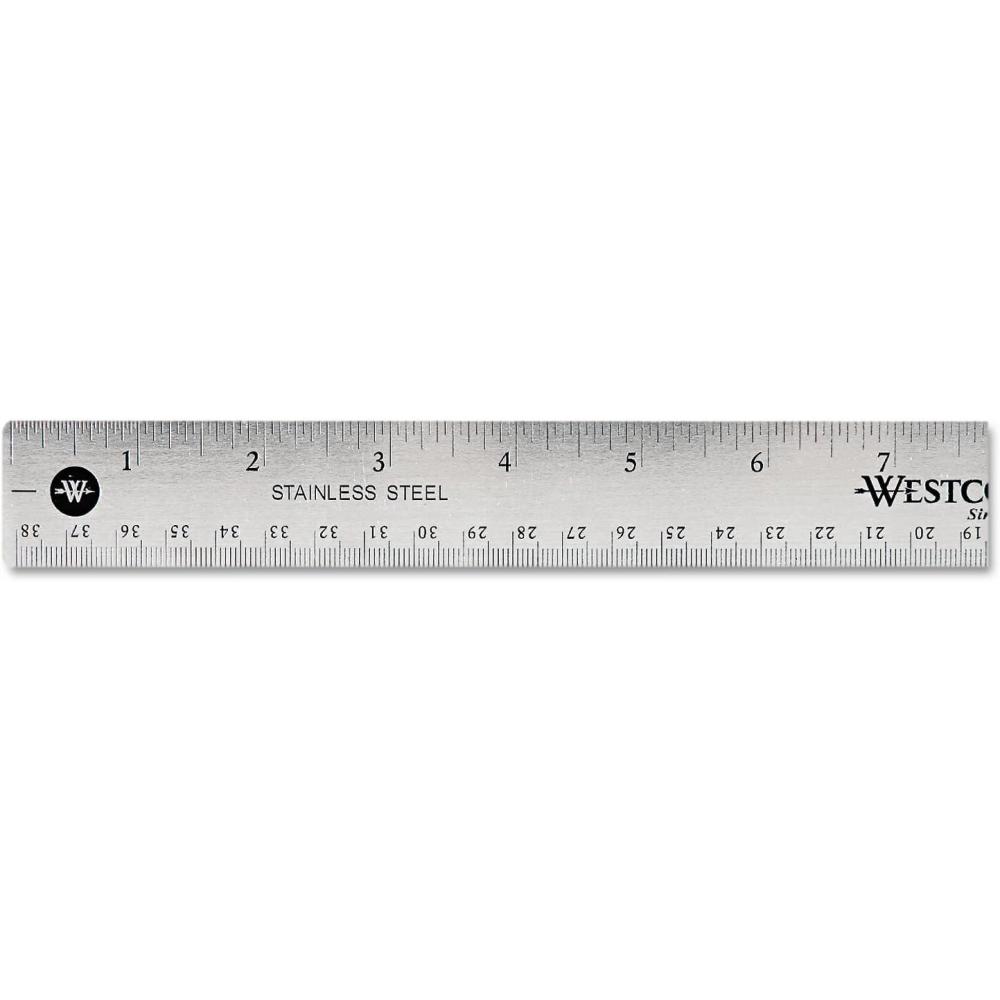 Westcott 10414 Stainless Steel Metal Ruler with Non-Slip Cork Base, 6 in(15 Inches)