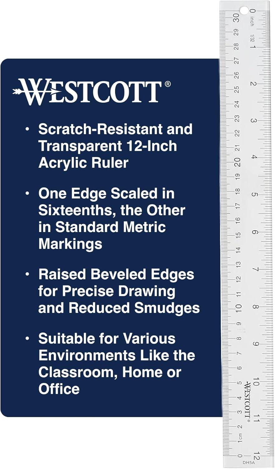 Westcott 10561 Acrylic Clear Ruler, 6 in(12 Inches)
