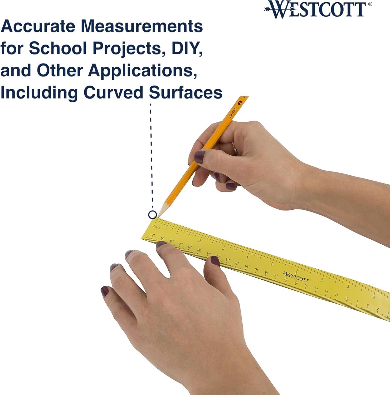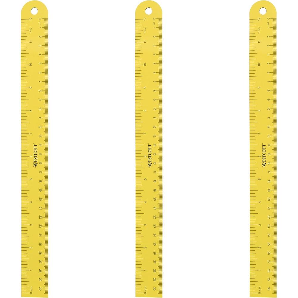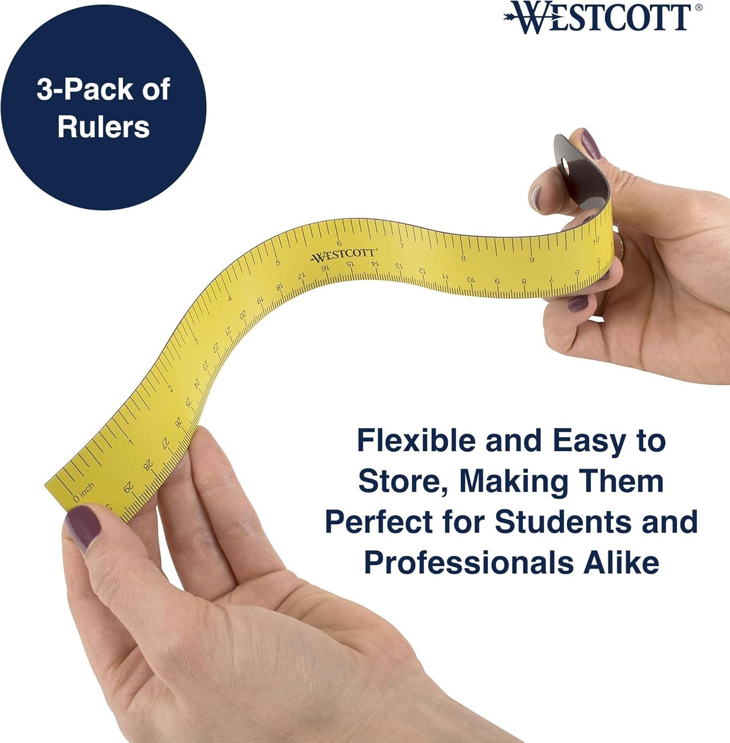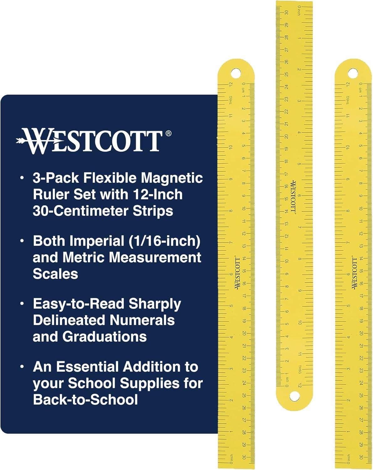 Westcott ‎12 inch Magnetic Flexible Rulers (3 Pack), Yellow, for School, Office, Crafts and DIY, Measuring Tools for Students and Adults(Single)