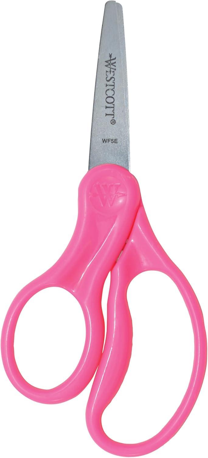 These 5-inch pointed scissors are specially designed for a child's hand. Complete with molded, asymmetrical handles for increased comfort and control, these cute scissors allow for comfortable left-handed use. Stainless steel blades make these school scissors both accurate and dependable. The perfect scissors for school kids, these mini scissors cut through paper, fabric, string, and other craft materials easily. Westcott is dedicated to supporting education and inspiring creative activities in the classroom and at home. Westcott products, including our kids scissors, are specifically designed for growing students and created to be fun and functional with superior quality and exceptional value.