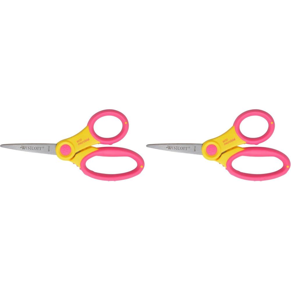 Westcott 14597 Right- and Left-Handed Scissors, Soft Handle Kids' Scissors, Ages 4-8, 5-Inch Pointed Tip(Single (Pack of 2))