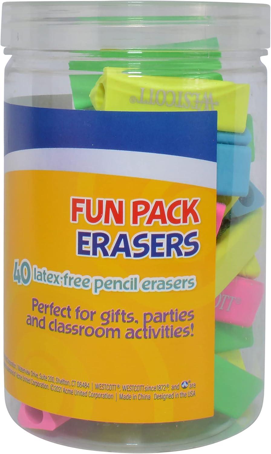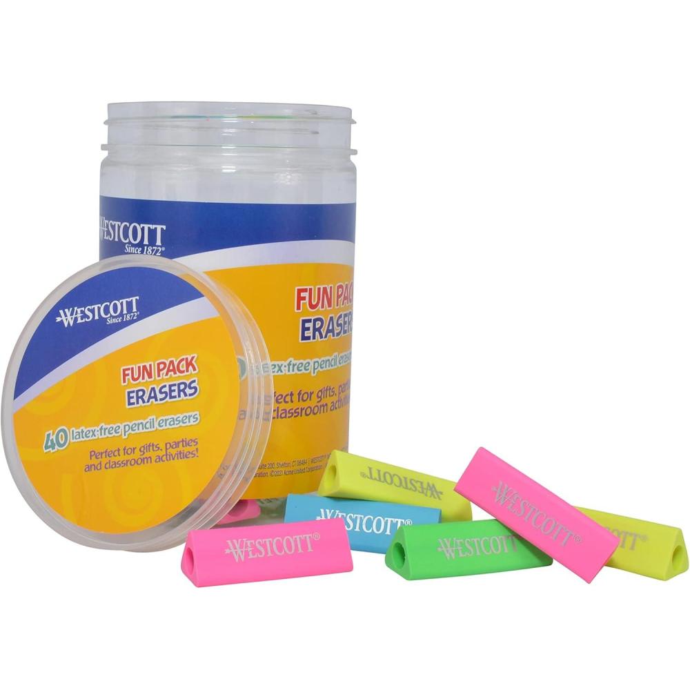 12 pack of small eraser toppers in assorted colors. Westcott is dedicated to supporting education and inspiring creative activities in the classroom and at home. Products are specifically designed for growing students, created to be fun and functional with superior quality and exceptional value.