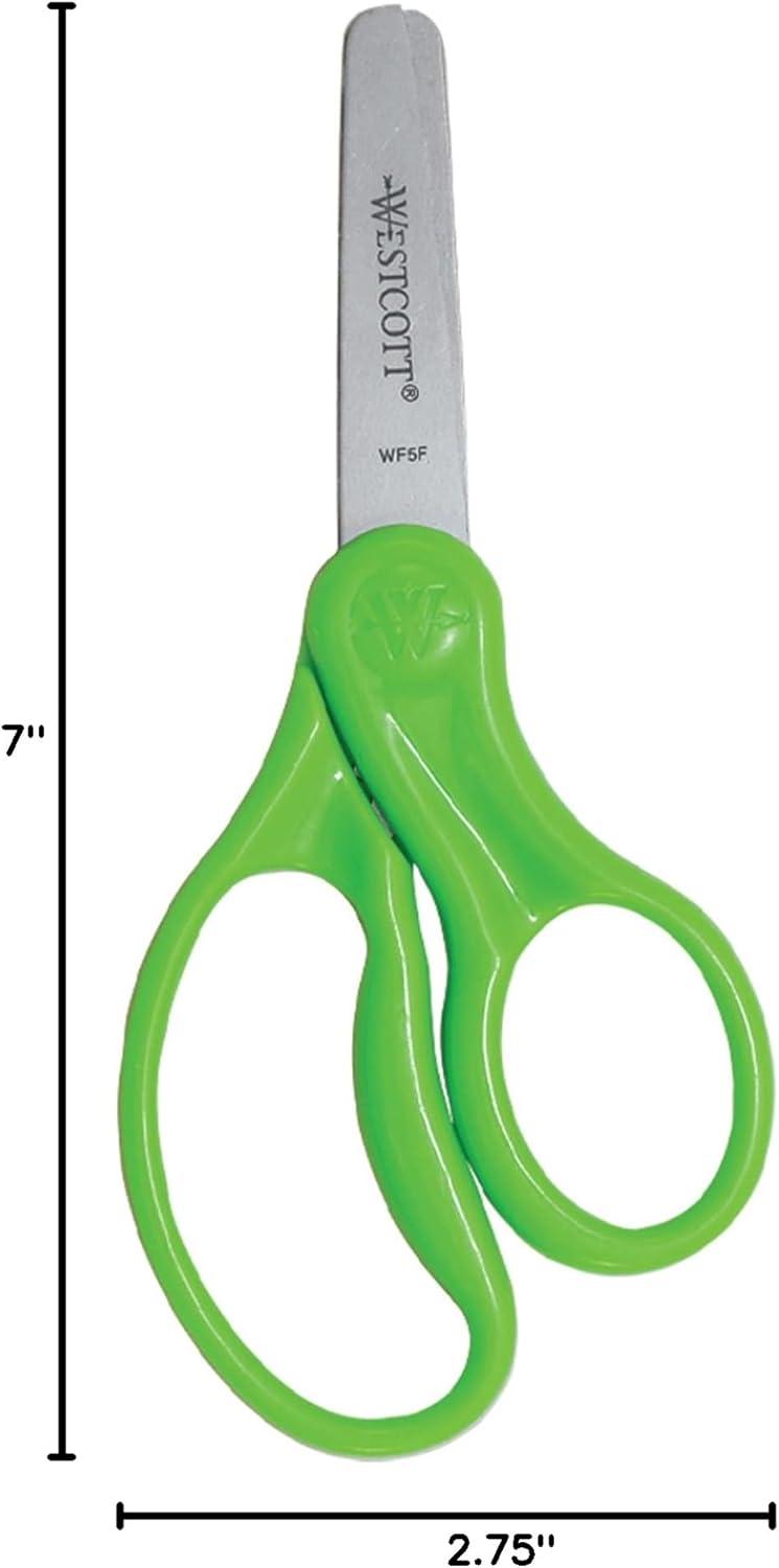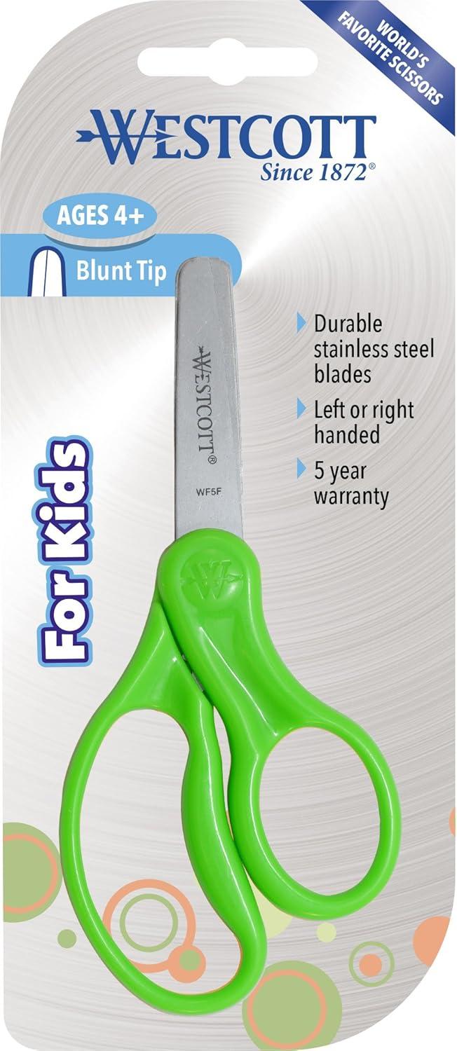 These 5-inch blunt scissors are specially designed for a child's hand. Complete with molded, asymmetrical handles for increased comfort and control, these cute scissors allow for either left- or right-handed use. Stainless steel blades make these school scissors both accurate and dependable. The perfect scissors for school kids, these mini scissors cut through paper, fabric, string, and other craft materials easily. Westcott is dedicated to supporting education and inspiring creative activities in the classroom and at home. Westcott products, including our kids scissors, are specifically designed for growing students and created to be fun and functional with superior quality and exceptional value.