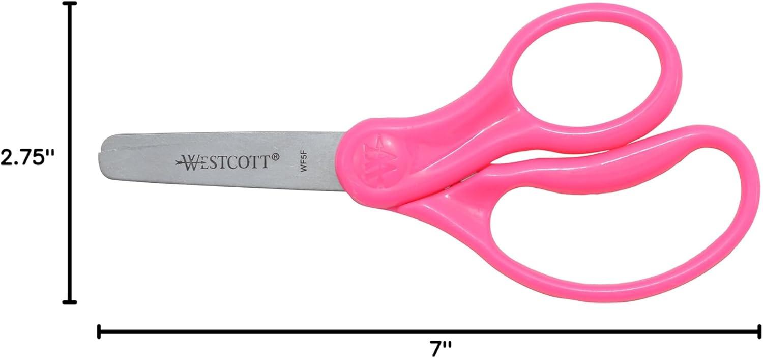 These 5-inch blunt scissors are specially designed for a child's hand. Complete with molded, asymmetrical handles for increased comfort and control, these cute scissors allow for either left- or right-handed use. Stainless steel blades make these school scissors both accurate and dependable. The perfect scissors for school kids, these mini scissors cut through paper, fabric, string, and other craft materials easily. Westcott is dedicated to supporting education and inspiring creative activities in the classroom and at home. Westcott products, including our kids scissors, are specifically designed for growing students and created to be fun and functional with superior quality and exceptional value.