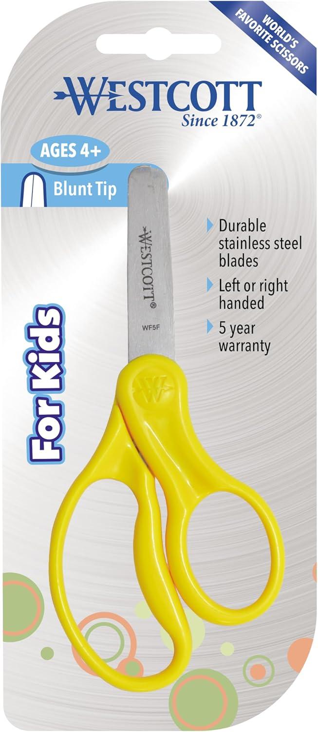 These 5-inch blunt scissors are specially designed for a child's hand. Complete with molded, asymmetrical handles for increased comfort and control, these cute scissors allow for either left- or right-handed use. Stainless steel blades make these school scissors both accurate and dependable. The perfect scissors for school kids, these mini scissors cut through paper, fabric, string, and other craft materials easily. Westcott is dedicated to supporting education and inspiring creative activities in the classroom and at home. Westcott products, including our kids scissors, are specifically designed for growing students and created to be fun and functional with superior quality and exceptional value.