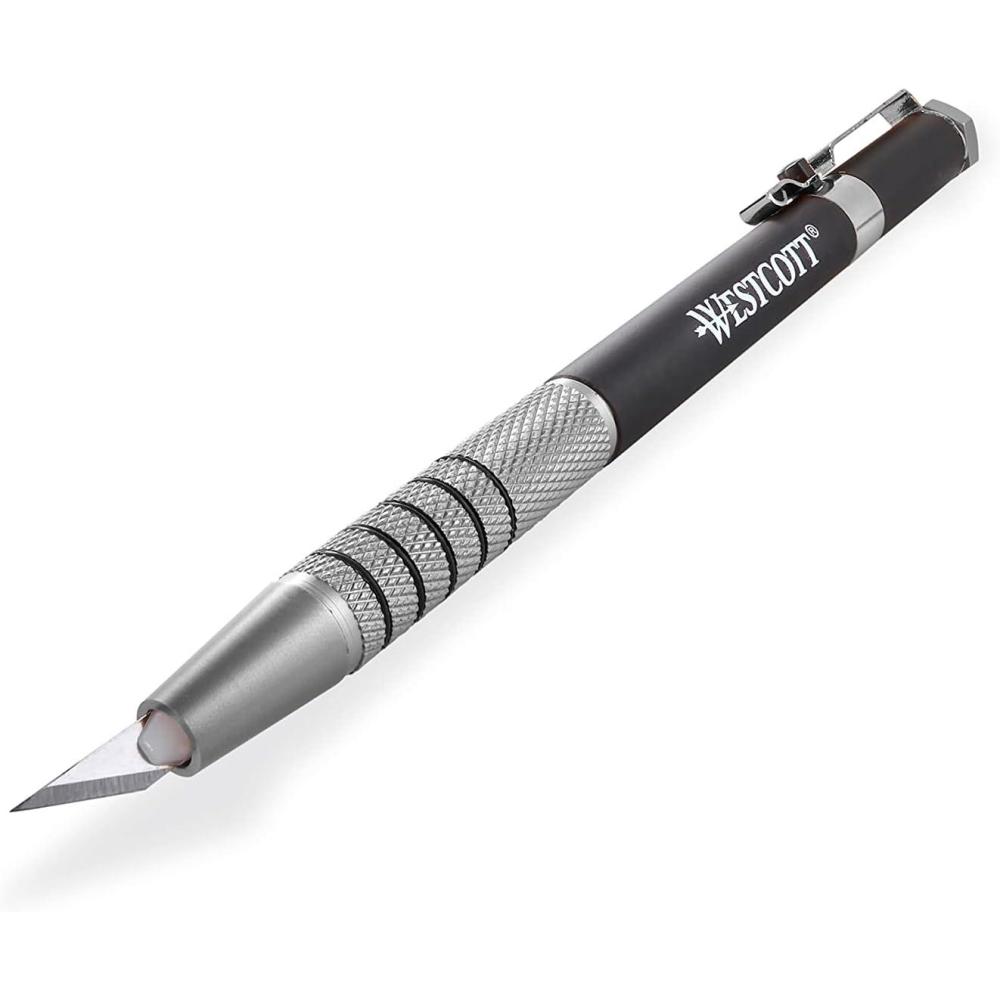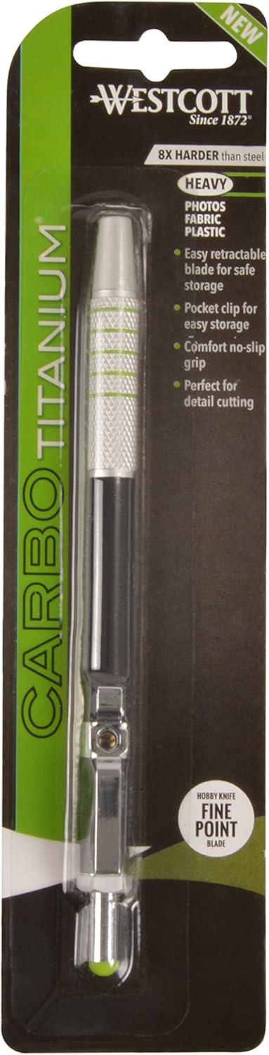Westcott 16963 Pen-Style Retractable CarboTitanium Bonded Hobby Knife, Silver