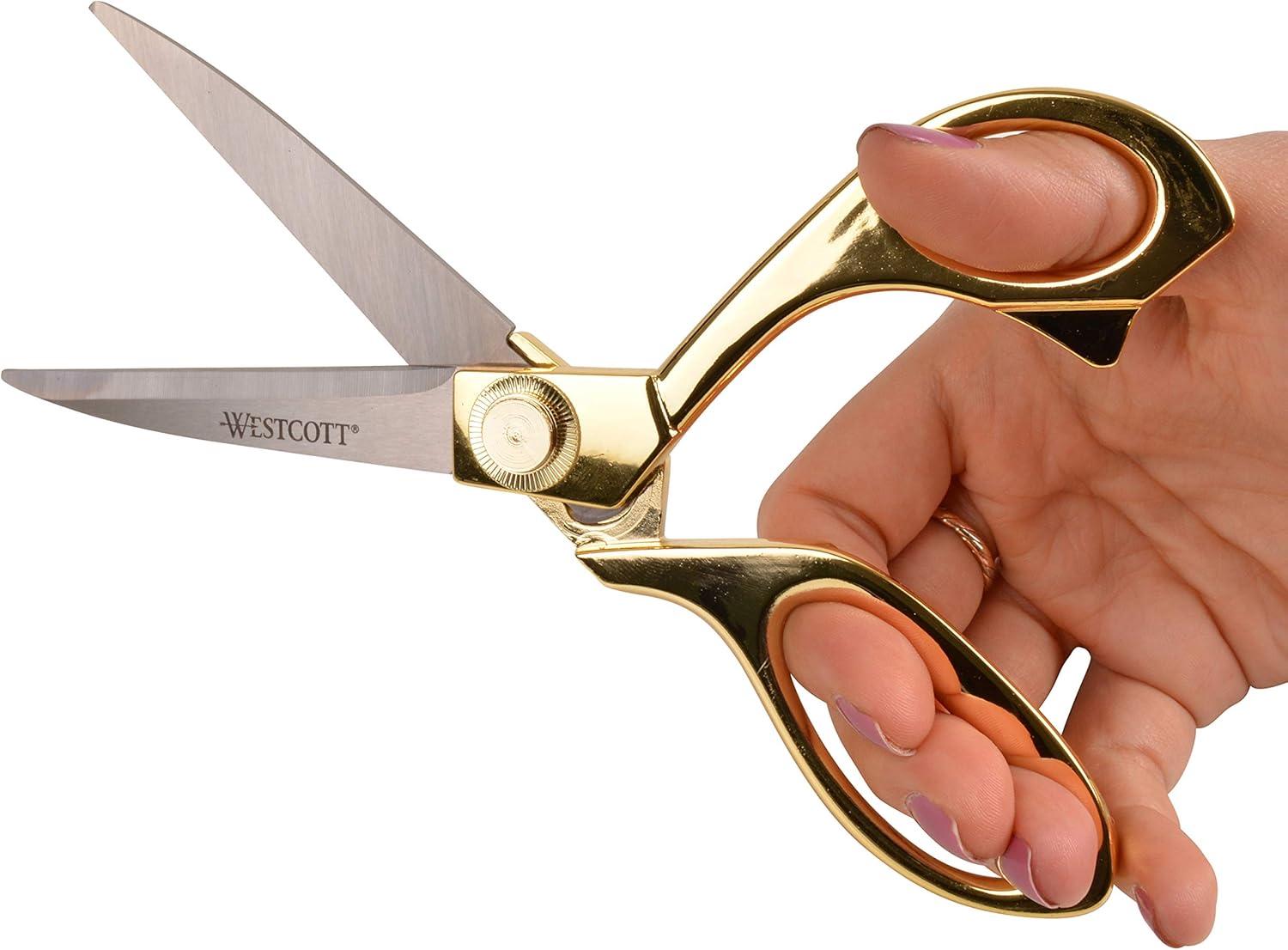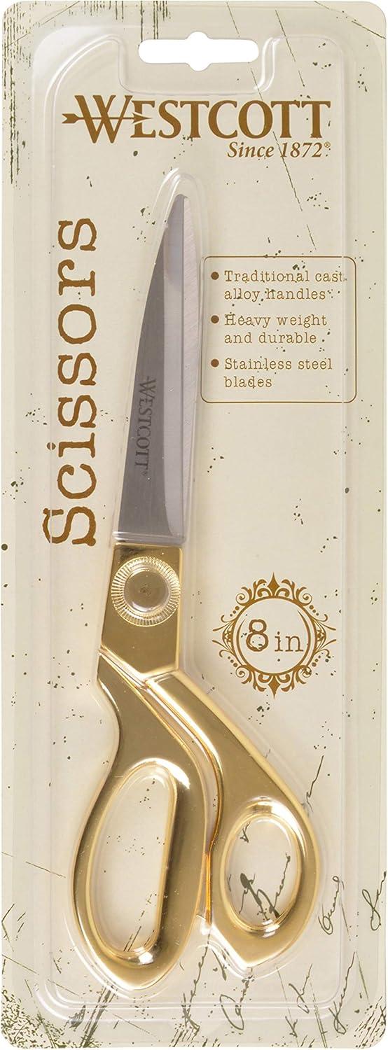 Westcott fashion scissors come in an assortment of colors and designs featuring seasonal patterns, metal finishes, unique handles and blade designs. Lightweight yet durable enough for common cutting jobs, these all-purpose scissors feature high-performance stainless steel blades capable of cutting through layers of paper, foam, and poster board. These cute scissors feature heavy-weight, fashionable gold-finish handles designed to comfortably accommodate cutting on flat surfaces. Westcott develops home and office products unmatched in style, design, and performance. We continue to deliver results that are both inspirational and functional.
