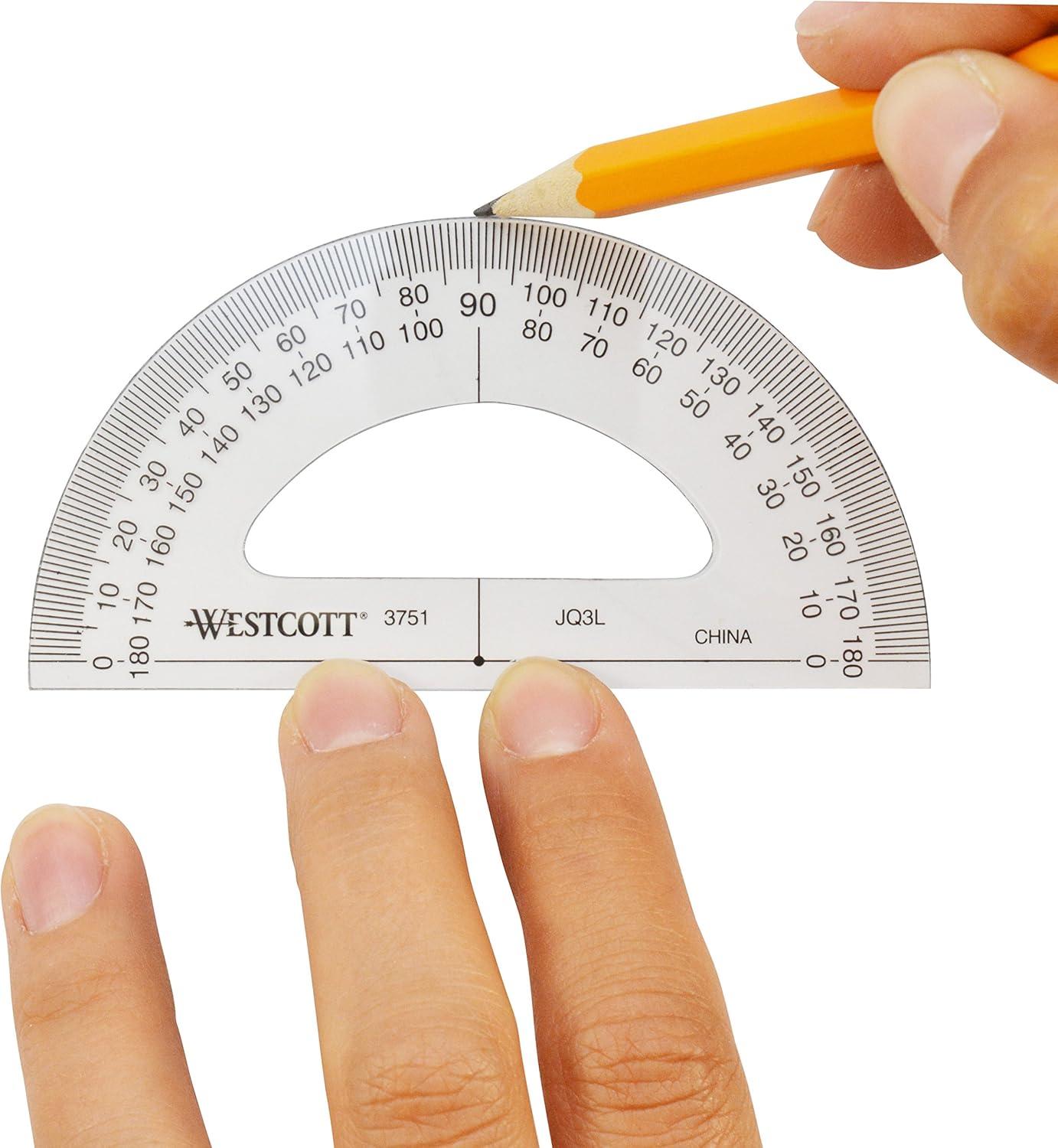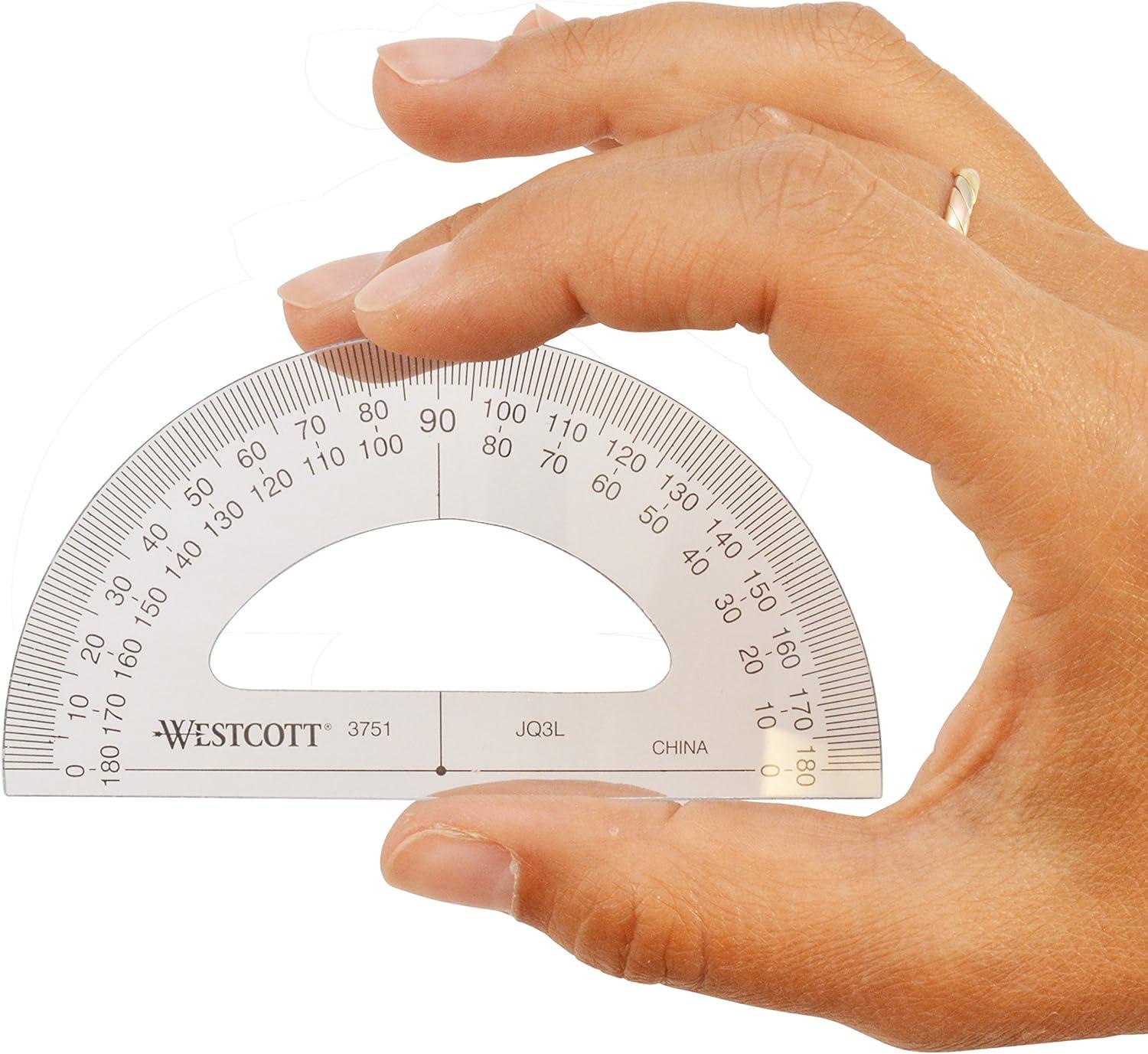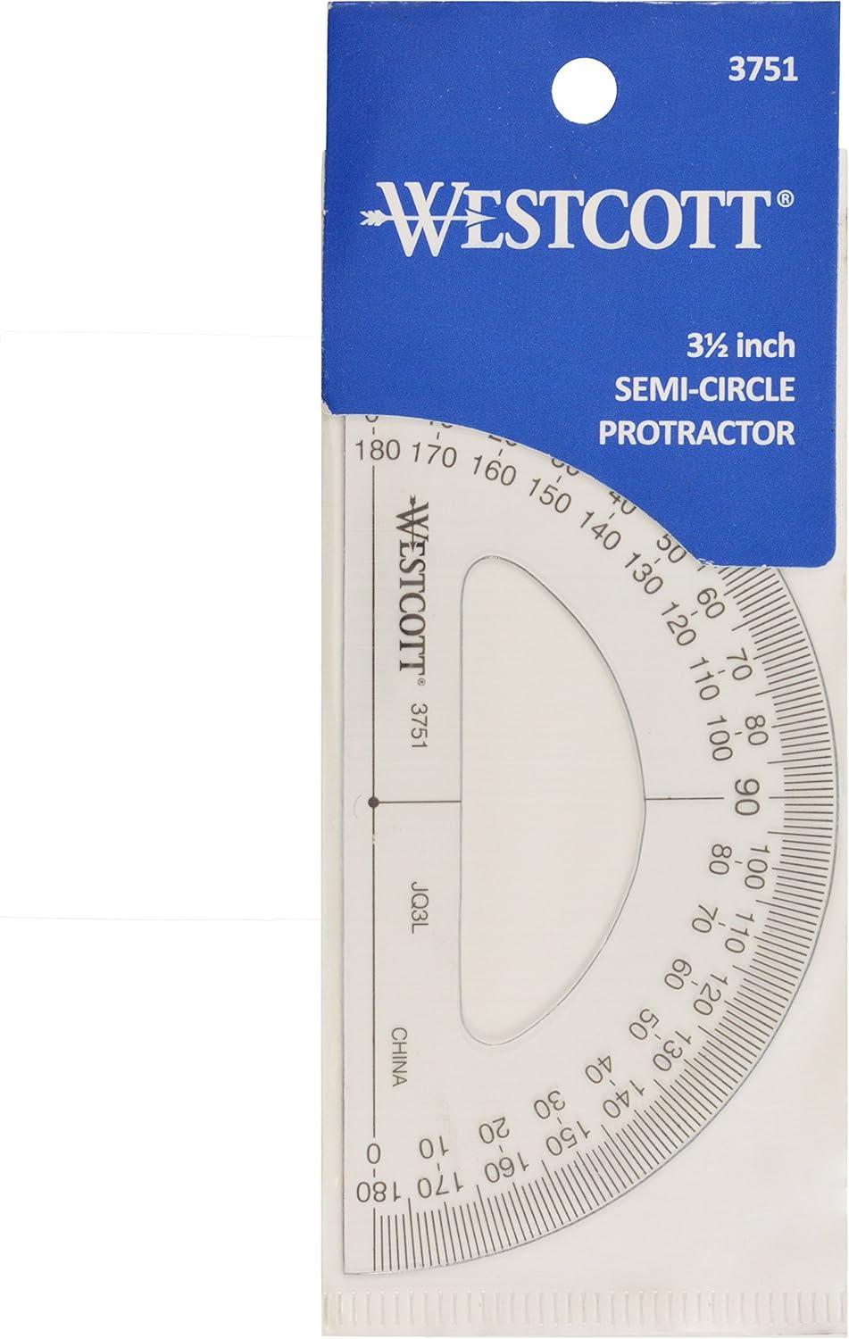 Westcott Semi-Circular Compass Protractor with sturdy quality and convenient design gives you the best using experience. This measuring tool is 3 1/2 Inch with 180 Degree protractor. Translucent ruler made of clear plastic allows you to see through the page while working on a project. Westcott focuses on creating innovative designs that provide style and quality to an assortment of school, craft, and office products which are perfect for your drafting and drawing needs.
