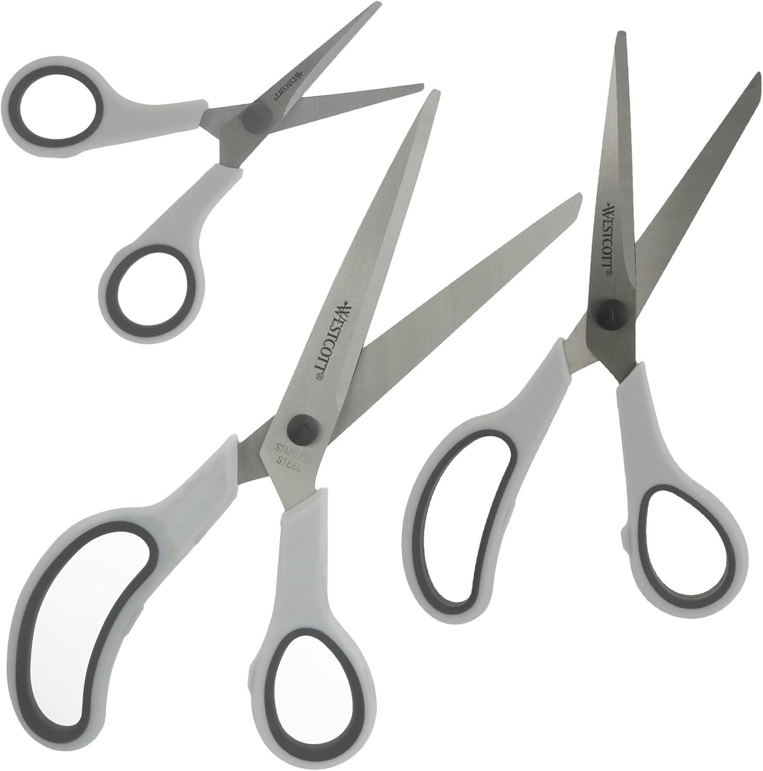 Westcott Easy Grip Scissors, Set of 3, Universal Scissors with Comfort Handle, Extra Sharp & Durable Stainless Steel Blade, Scissors for Crafts, Home, School and Office, N-90029 00(Grey/Charcoal Grey)