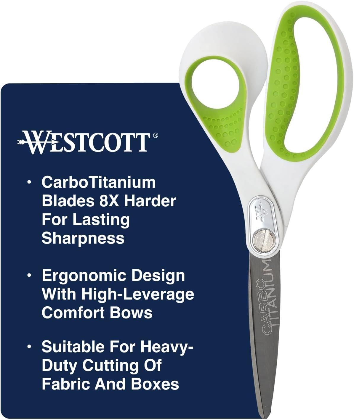 Introducing the Westcott Heavy Duty CarboTitanium Bonded 8″ Straight Scissors, a premium choice for all your cutting needs. With blades reinforced with innovative CarboTitanium coating, these scissors are designed to be eight times stronger than standard stainless steel options. This feature ensures durability and long-lasting sharpness, empowering users to tackle various tasks efficiently. Crafted with an ergonomic design, these fabric scissors provide a comfortable grip, reducing fatigue during prolonged use. Whether you're cutting thick fabrics, cardboard, or even plastic, the versatility of these heavy duty scissors makes them an indispensable tool for both crafting and professional settings. Ideal for teachers, students, and DIY enthusiasts, these scissors are a reliable addition to any set of sewing supplies. The Westcott Heavy Duty CarboTitanium scissors not only excel as a fabric cutter but also shine in performance as crafting and sewing scissors. Enjoy the precision and user-friendly design that elevates your creative projects. Experience the exceptional quality and functionality that has made Westcott a trusted name in the industry, and enhance your crafting and sewing endeavors with these robust scissors.