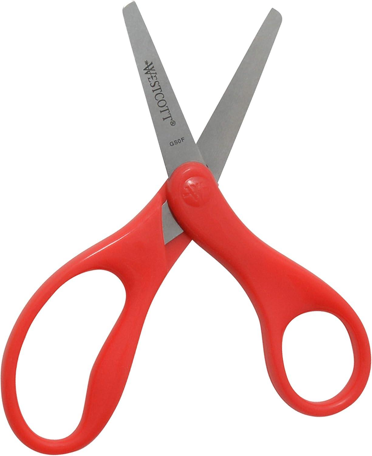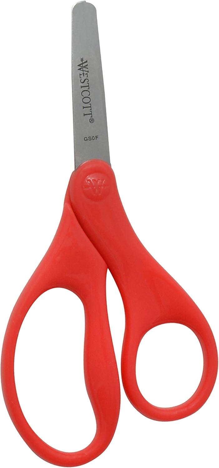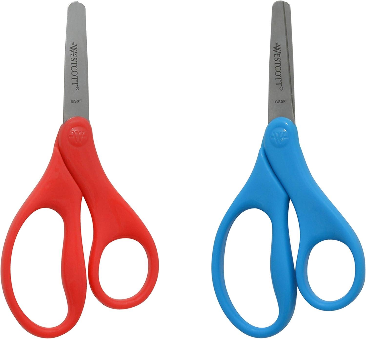 Westcott Kids Scissors, 5 Inch, Pointed, Pack of 6-3 Red and 3 Blue(5" Blunt)